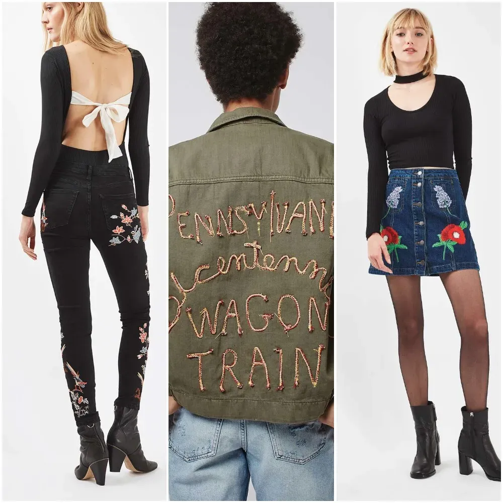 What are the key embroidered fashion trends this season and how do they shape outfits?