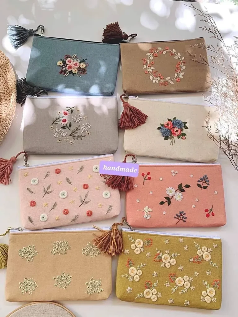 Small canvases can deliver big impressions. Pouches and cosmetic bags are ideal for showcasing initials or tiny motifs, offering portable, usable art. The compact surface is perfect for experimenting with color and texture, illustrating how embroidery gift ideas can be both practical and stylish.